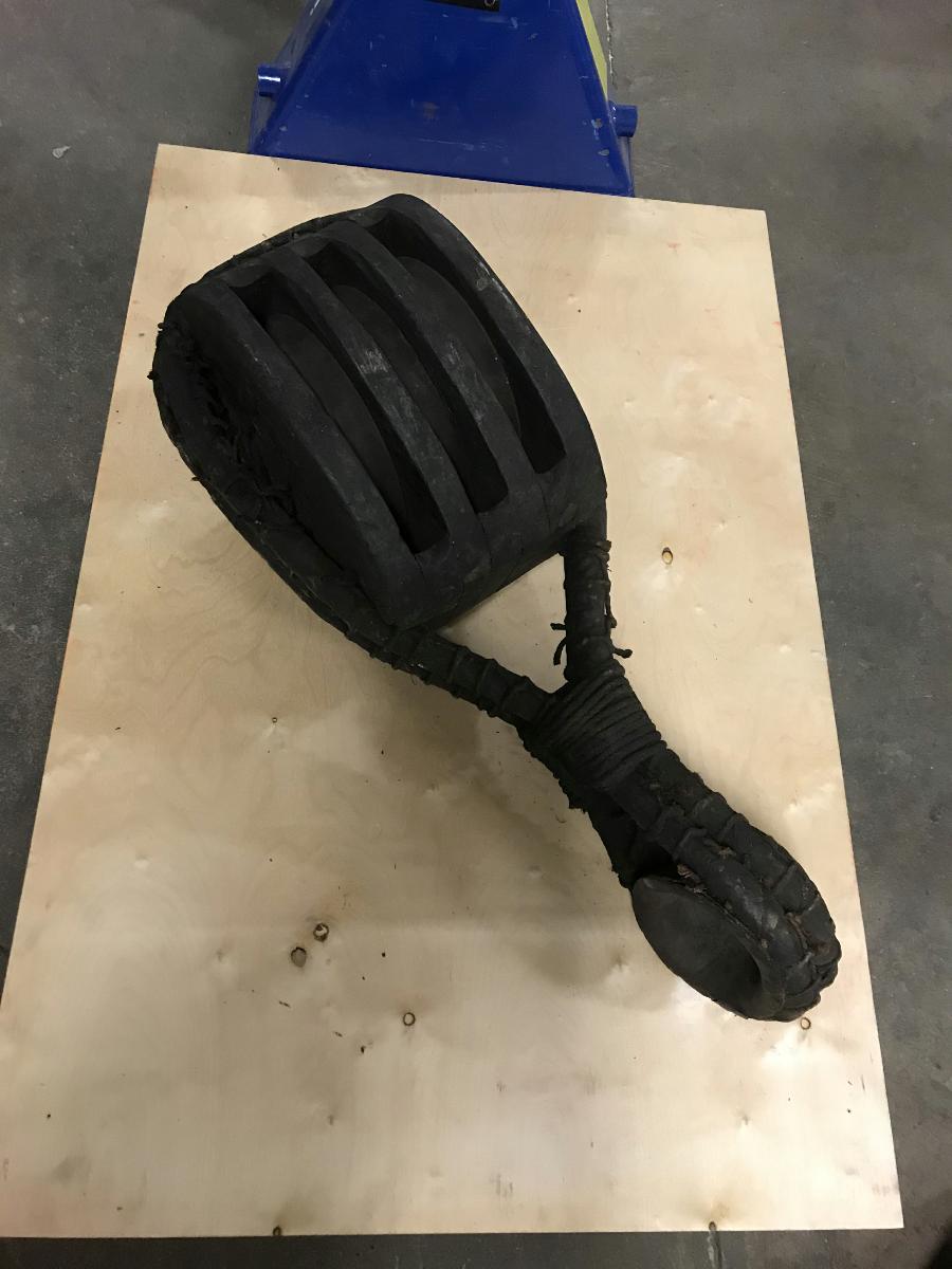 Block; 3-skivigt, träskivor, klädd tågstropp med fastbändslad kaus.