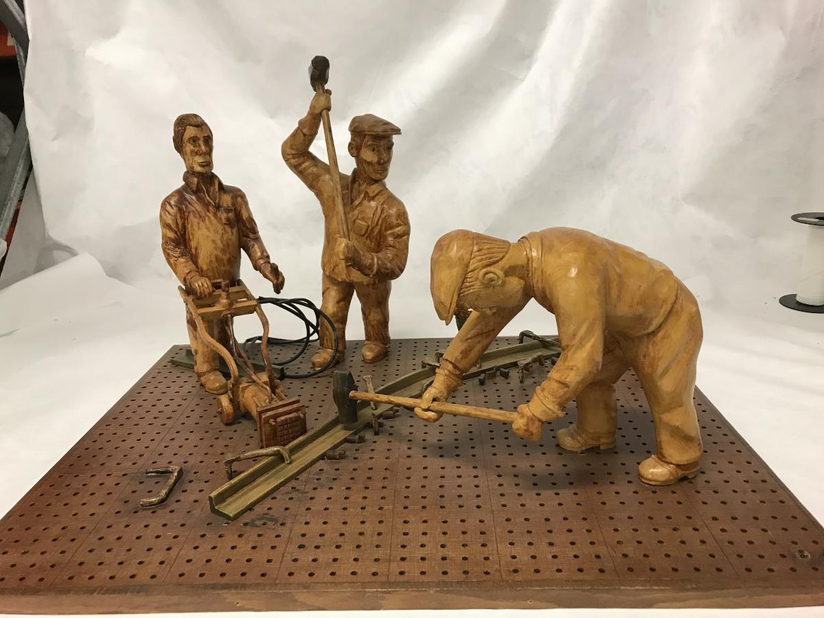 Modell föreställande ett arbetslag utförande spantbockning