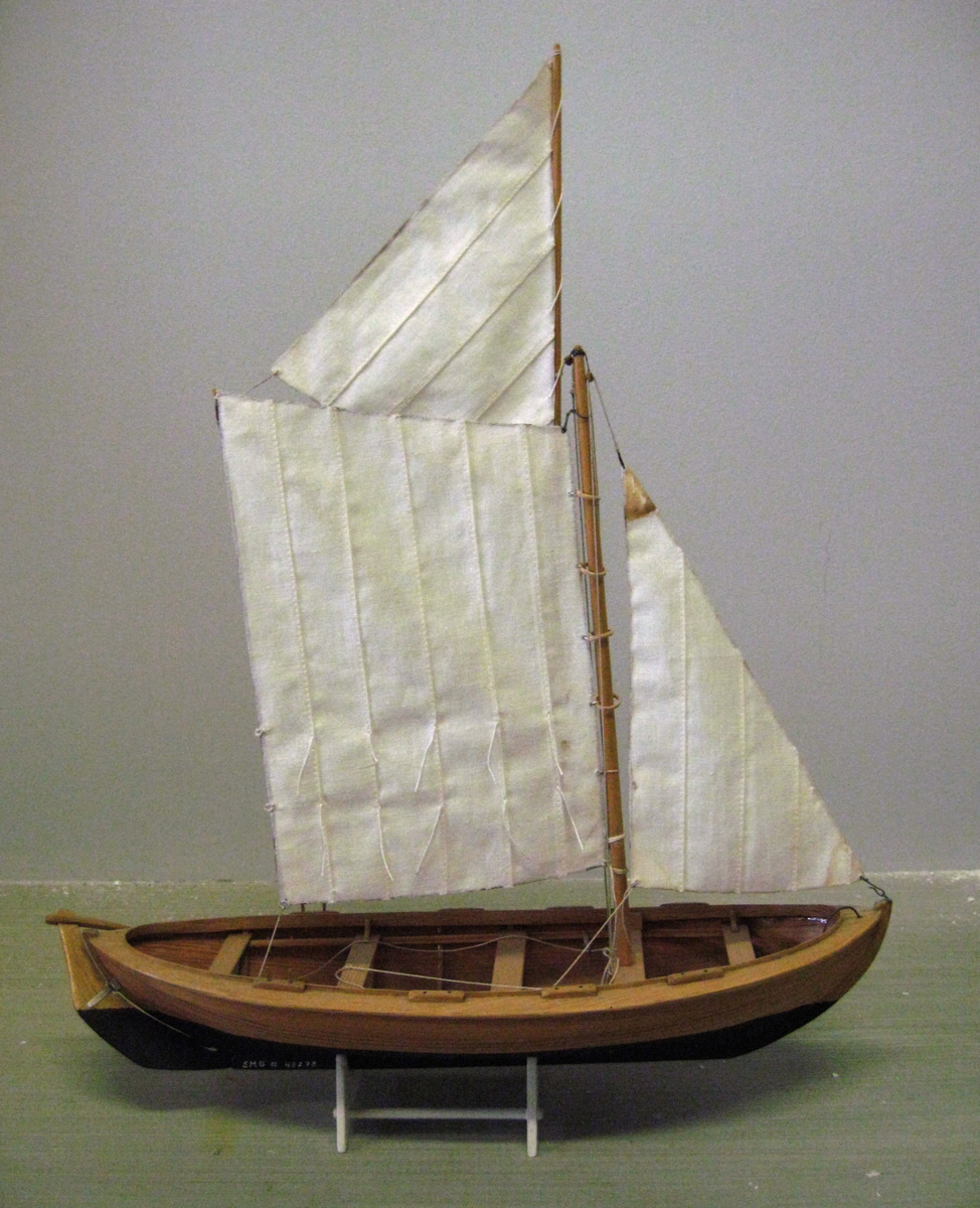 Fullmodell: Snipa från Gullholmen. Spetsgattad kölbåt med utanpåliggande roder. Mast med sprisegel, trekantig topp på lös stång och fock. 5 tofter, gröna durkar, trärena fribord och svart botten. Står på skrå. Efter uppmätning av Olof Hasslöf och Henry Magnusson. Originalritningar i GHM. Litteratur: Hasslöf, O., Svenska Västkustfiskarna, 1949, s.323.