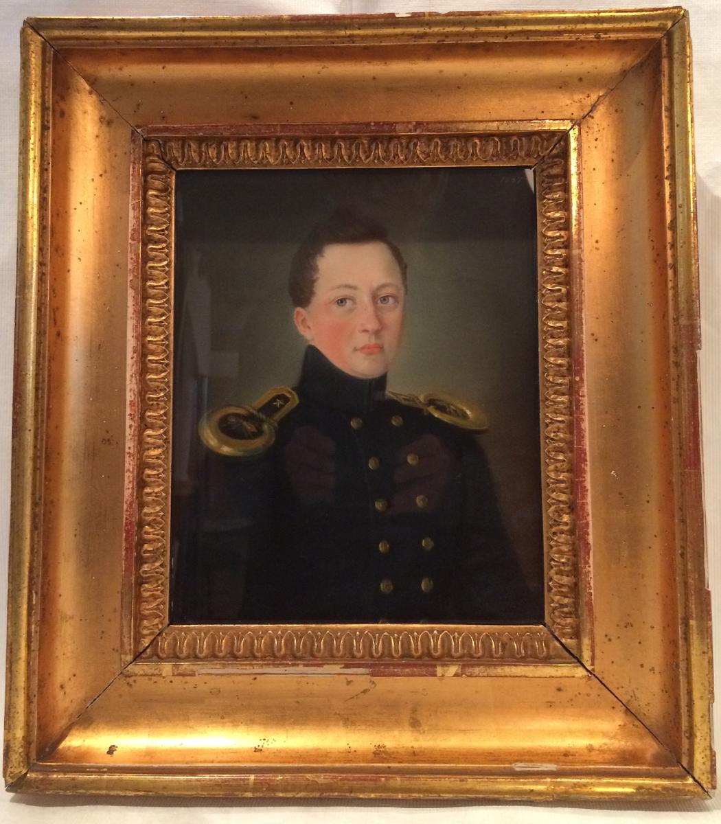 Påskrift: Porträtterad vid 21 års ålder 1837 af Ricter. Fredrik Henrik af Chapman född 1816 dog 1853. Anna.