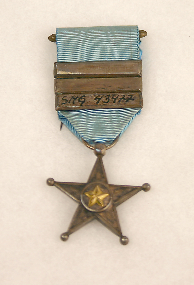 'Kongostjärnan' i ljusblått sidenband. Förvarats i en vit pappkartong med guldkant. Tilldelad kapten Nilsson av Belgiska Staten för hans tjänst i Kongofristaten.