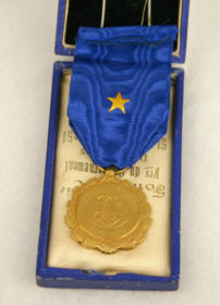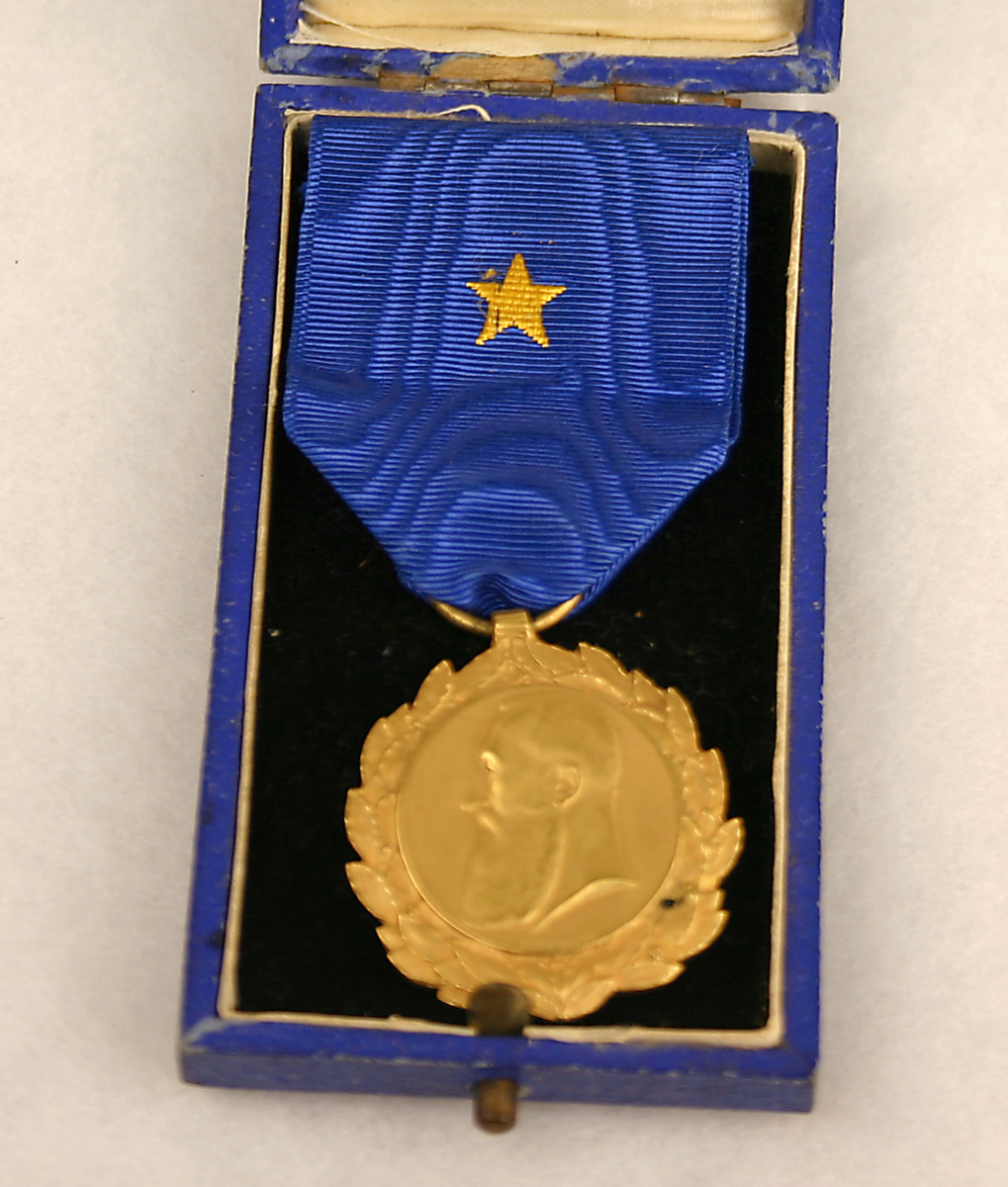 Guldfärgad förtjänstmedalj i blått band med en tryckt guldstjärna. Ligger i en blå ask i konstläder med en stjärna i relief på locket. Tilldelad kapten Nilsson av Belgiska Staten för hans tjänst i Kongofristaten.