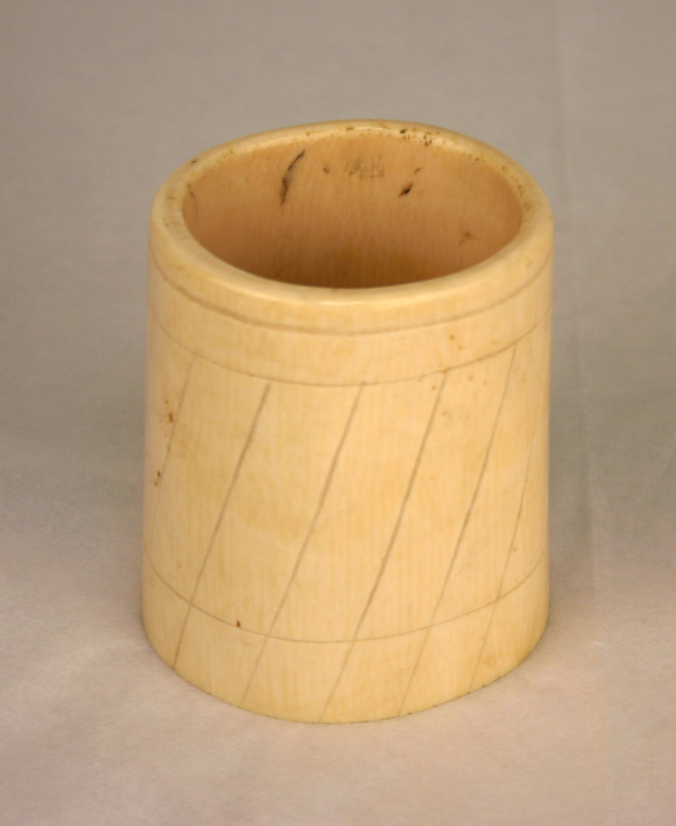 Hårt armband med inristat mönster. Tillverkad av en elefantbete. Elefanten sköts av Nilsson i Kongo början av 1900-talet.
