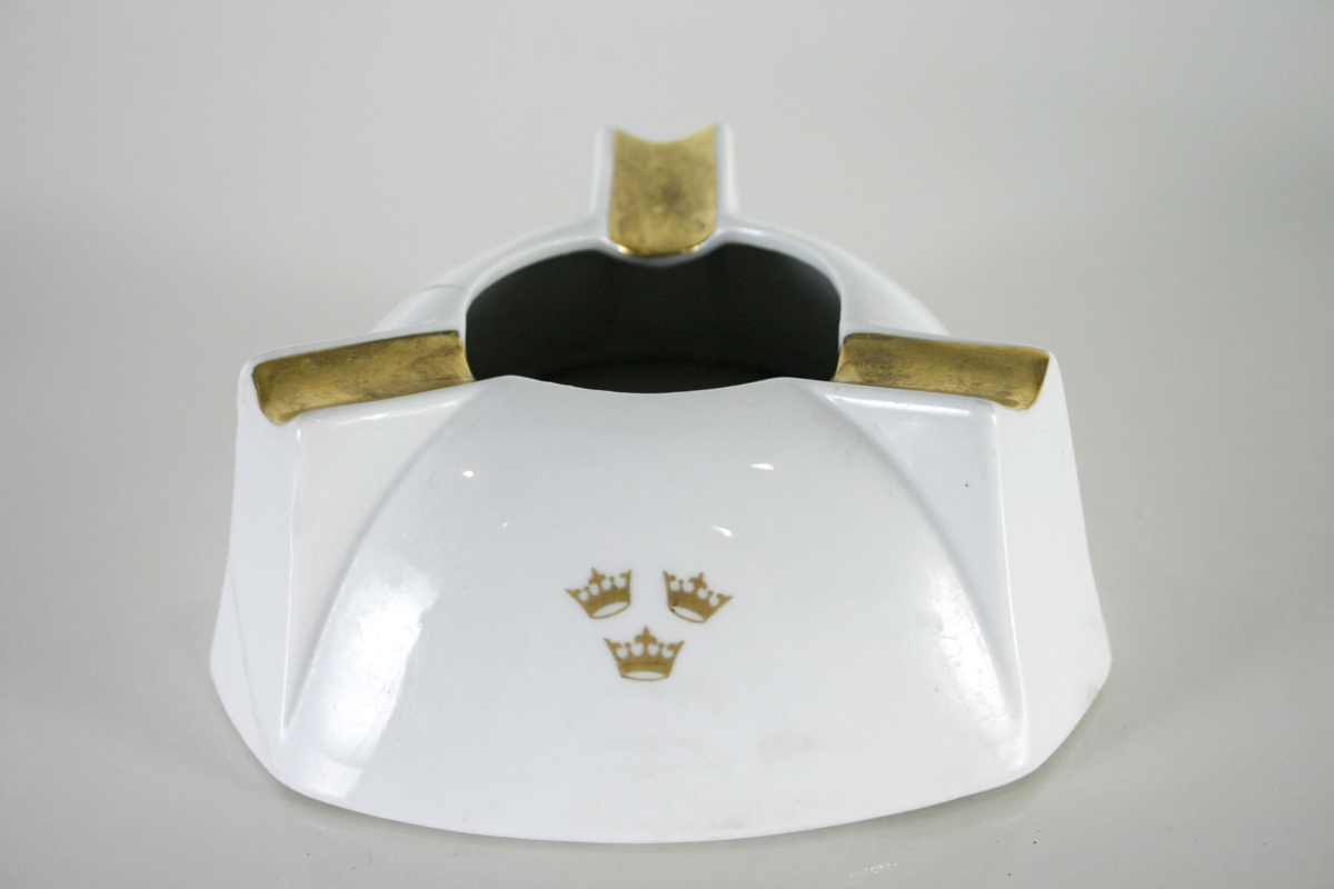 I vit porslin med gulddekor.