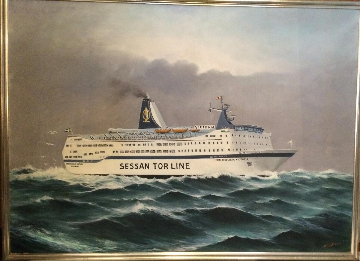 Fartyget ses från styrbords sida på gång i öppet hav. Fartyget levererades från Arendalsvarvet den 10 apr 1981. Skrovet är vitmålat med ljusblå överbyggnad och mörkblå skorsten med Sessan Tor Lines skorstensmärke i gult. Fartyget för svensk flagg i aktern, dansk på radiomasten och gösen. På bogen står KRONPRINSESSAN VICTORIA i mörkblå versaler, mitt på fartygsidanstår SESSAN THOR LINE MED stora versaler. I aktern står KRONPRINSESSAN VICTORIA.
