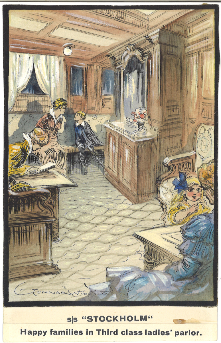 Påskrift: s/s STOCKHOLM Happy families in Third class ladies' parlor.