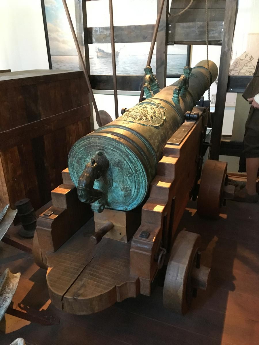 En av två kanoner upptagna från vraket av dykarklubben Poseidon den 3 april 1961. Systerkanonen överlämnad till Örlogsmuseet i Köpenhamn 12 februari 1971.