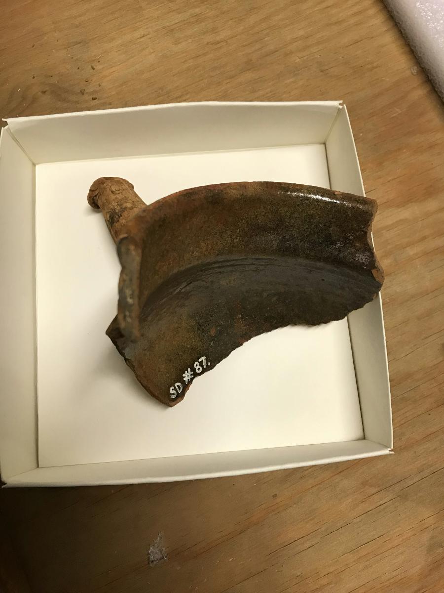 Med glasyr på insidan i brunflammigt.