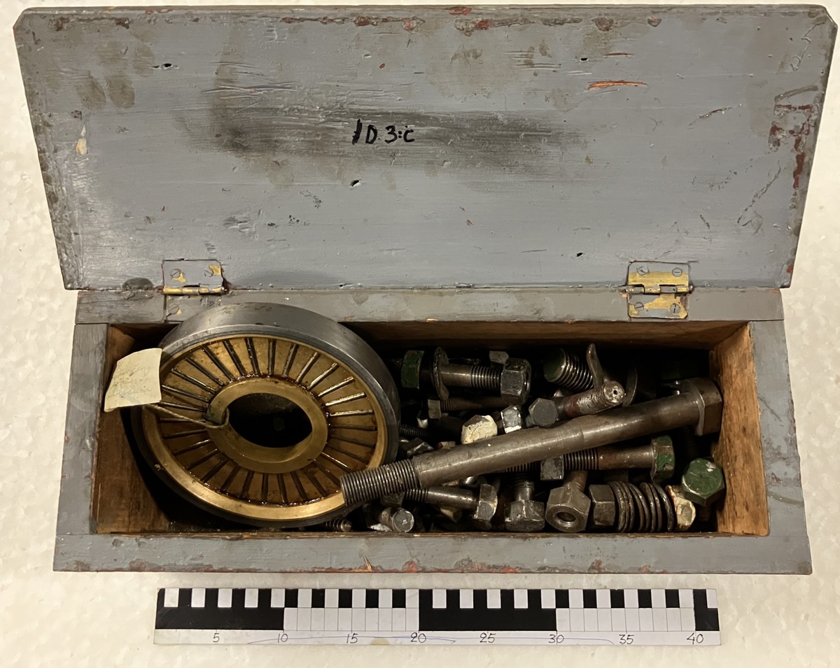 För blänksken på fyrskepp FINNGRUNDET nr 25. Innehållande diverse infästning samt en typ av nållager.