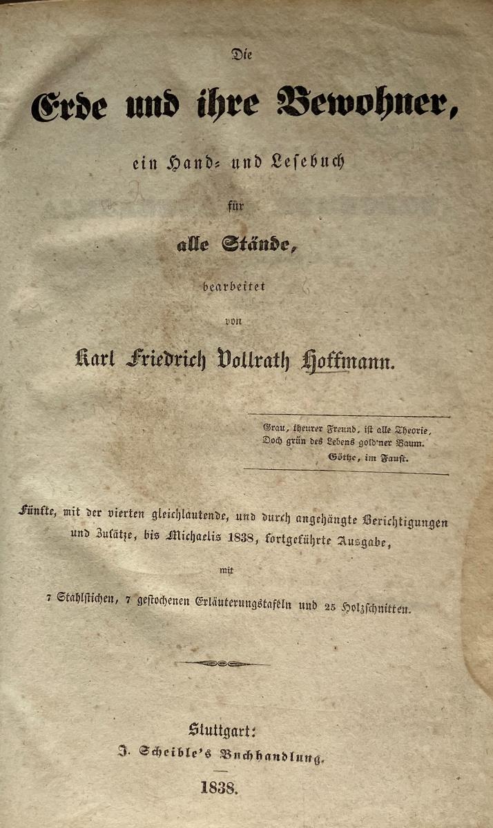 Hoffman, Karl Friedrich Vollrath, Die Erde und ihre Bewohner: ein Hand- und Lesebuch für alle Stände, 5. Ausg., Stuttgart, 1838