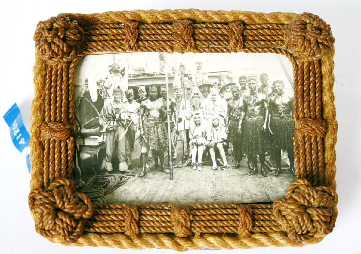 Fotot taget i samband med linjedop på okänt segelfartyg, Ramen troligtvis tillverkad av gåvogivaren själv.