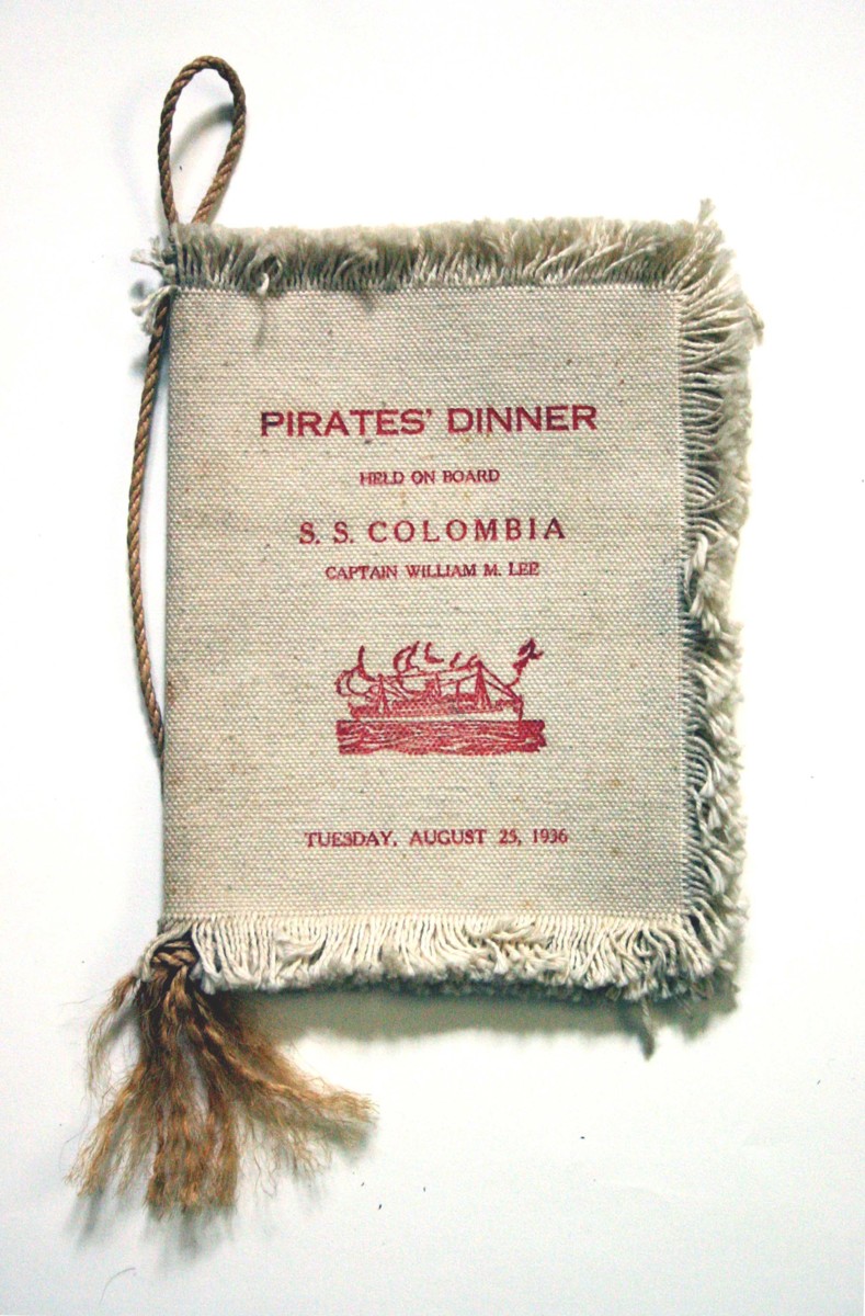 Pirates' Dinner held om board SS Colombia. Captain William m. Lee. Tuesday, August, 25, 1936.
