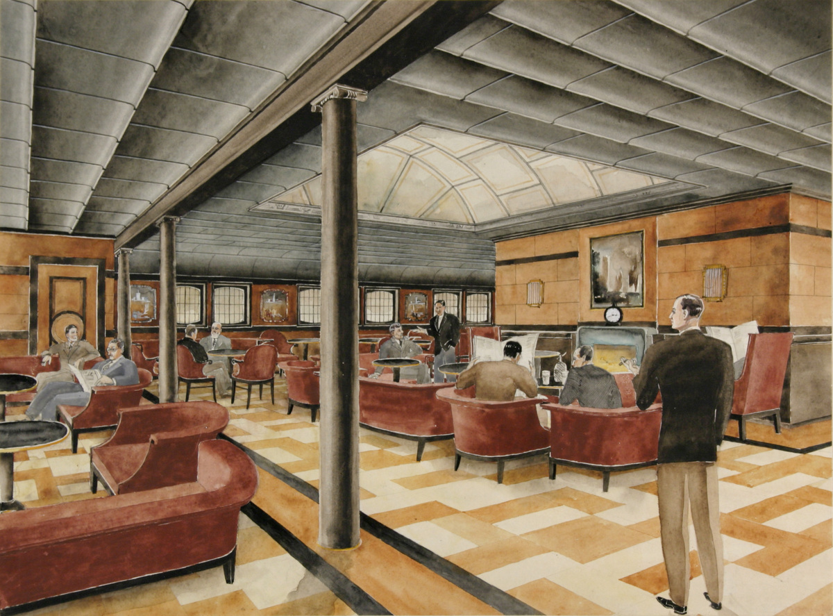 Gouachemålning, rökrum B-däck 2:a klass