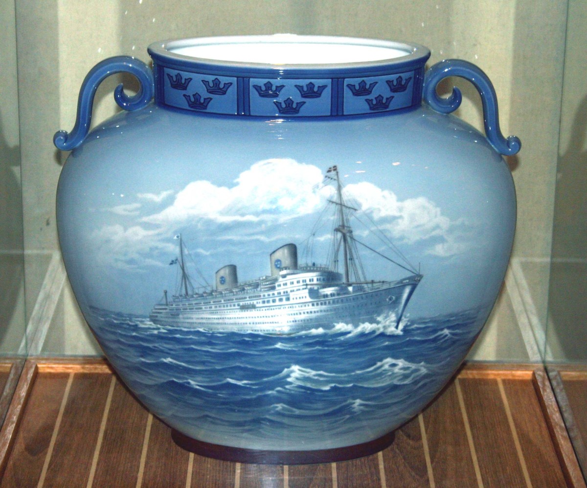 Enligt uppgift i samband med köpet skall urnan vara designad av Margarete Hyldahl (1909-1963), Bing och Gröndahl. Den är del av en servis som tillverkades för Svenska Amerika Linien och fanns ombord på KUNGSHOLM -53 och GRIPSHOLM- 57. Urnan finns i två exemplar varav ett i USA.