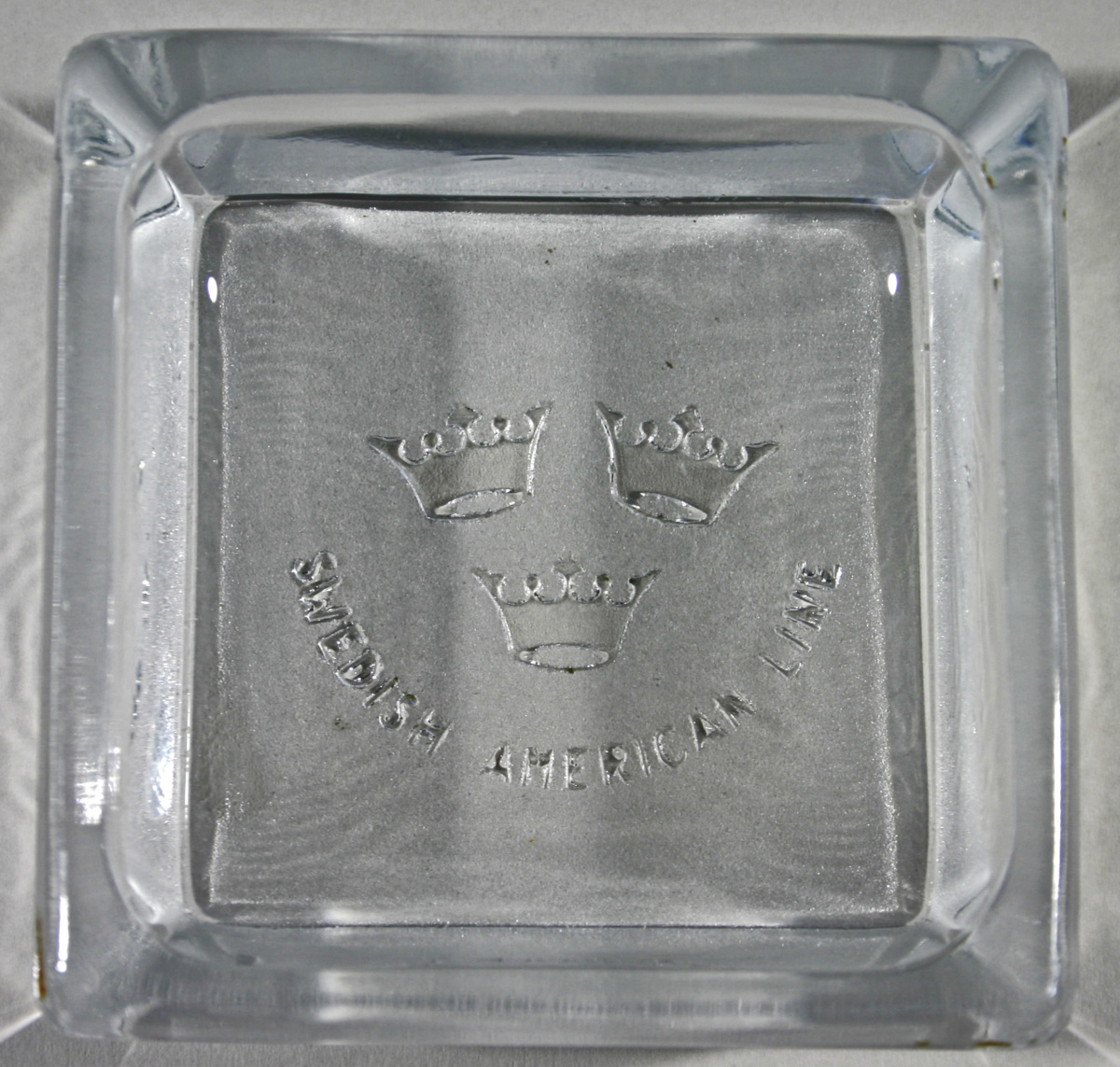 Ofärgat glasaskfat med SAL:s emblem i botten.