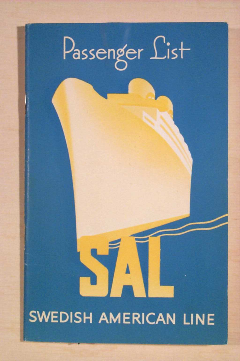 Häftad passagerarlista med 44 sidor från m/s GRIPSHOLM:s resa nr 163 från New York fredagen den 15 april 1949. Omslagstext 'Passenger List SAL Swedish American Line'.