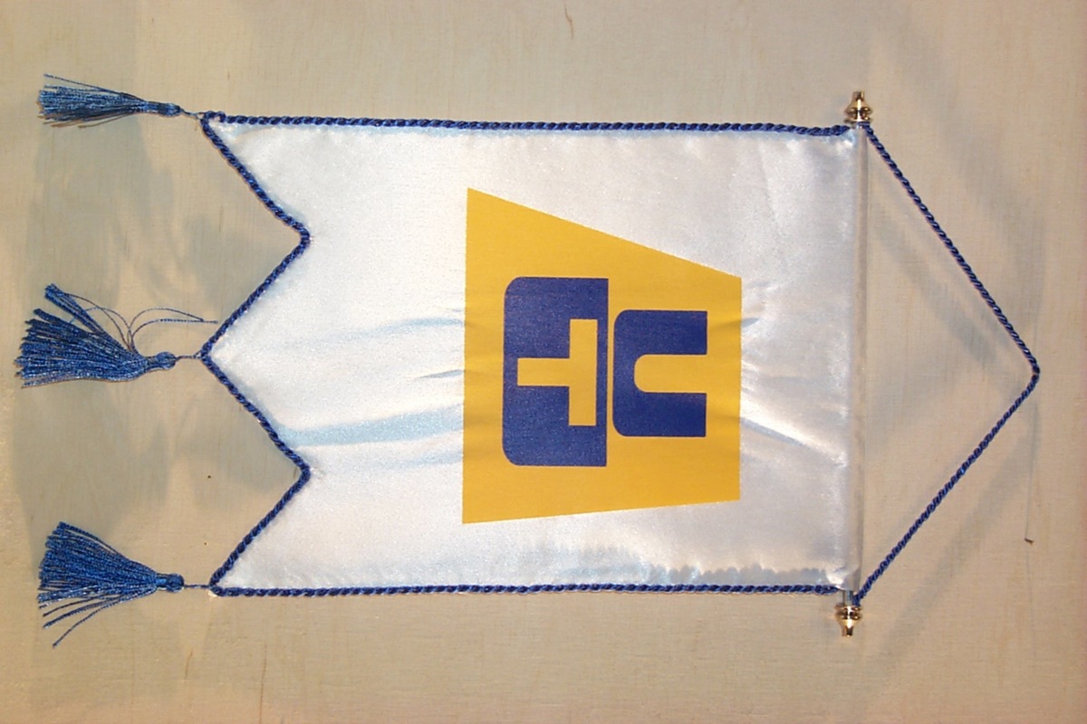 Bordsflagga i form av ett standar. Dubbelt vitt tyg vikt över en järnstång med förnicklade ändknoppar. Flaggan är tretungad och är kantad med en blå snodd och försedd med en blå tofs i varje spets. I mitten rederimärke som består av ett skorstensformat gult fält. I det gula fältet står ett mörkblått U över en mörkblått fält i form av en tvärskeppsektion med ett infällt gult T.