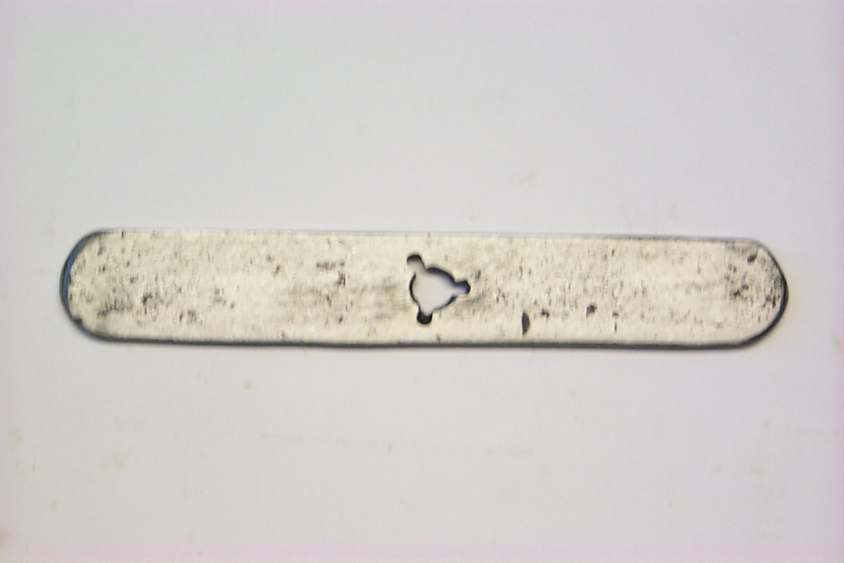 Gängverktyg för utvändig gänga bestående av ett rektangulärt stålstycke med avrundade ändar. I mitten ett gängat hål med tre uttag för spånavskiljning.