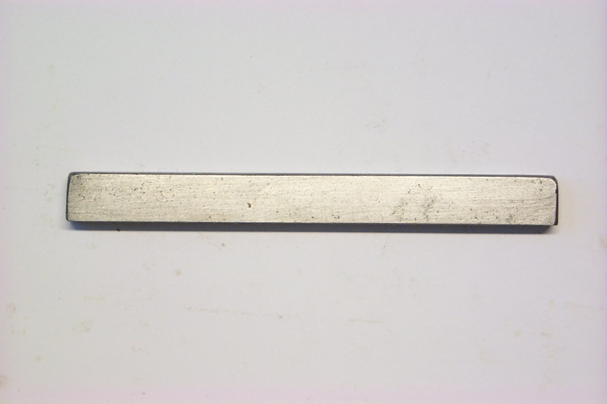 Linjal tillverkad av ett rektangulärt stålstycke med två skarpa och två avrundade kanter. Linjalen har ingen märkning.