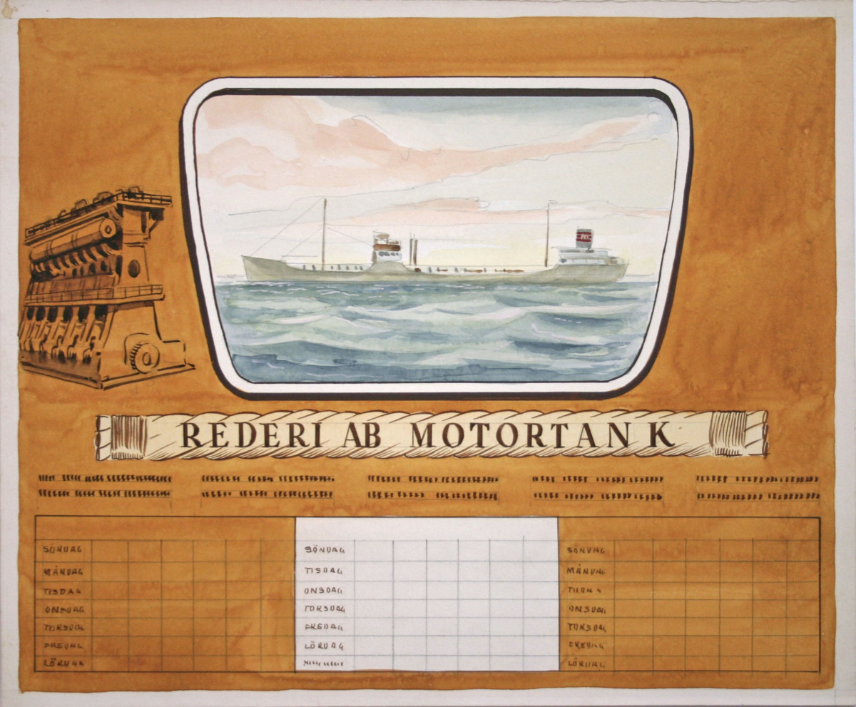 Rederi AB Motortank. Förslag till almanacka. Stämpel på baksidan: 'Copyright Almqvist & Wiksells Boktryckeri A.B. Göteborgskontoret -Orvar Jansson'
