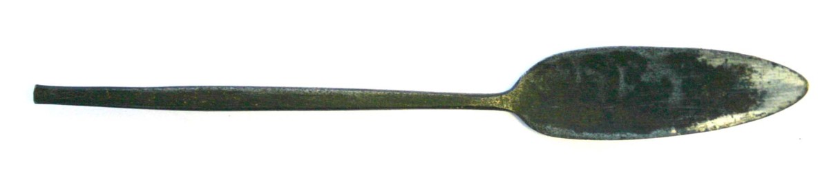 Skedliknade verktyg med fyrkantigt skaft. Verktyget har förmodligen använts på Eriksberg långt in på 1950-talet. Givaren har erhållit verktygen av en arbetskamrat.