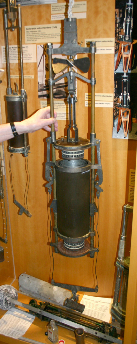 Isolerande vattenhämtare, Pettersson-Nansen, 1905. När Fritjof Nansen kom hem från FRAM-expeditionen 1896 förbättrade han OPs vattenhämtare i samarbete med Otto Pettersson. Den viktigaste förändringen blev den till djupet medföljande termometern. Mera i Svansson OP-bok, sid 218-223.