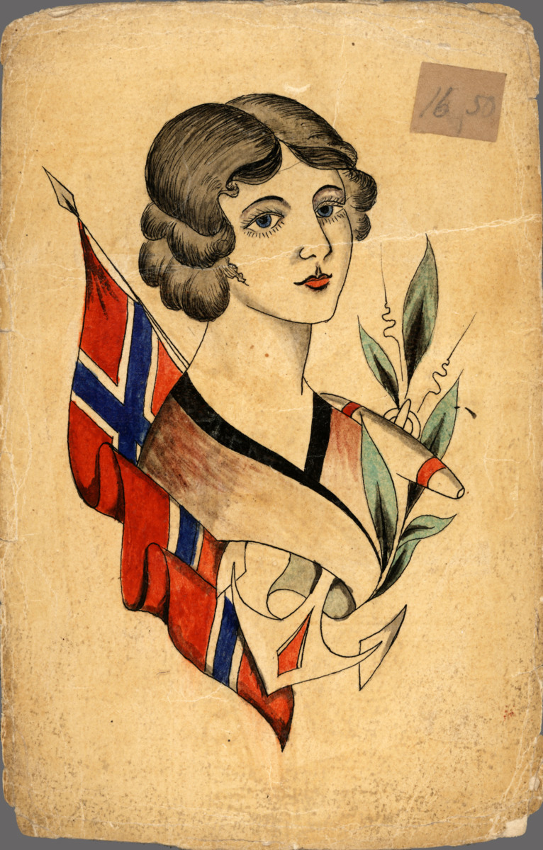 Färglagd och lackad tatueringsförlaga.