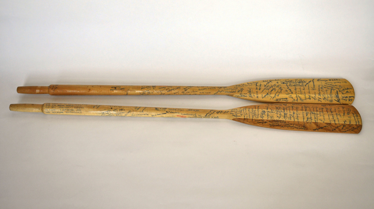 Åror med namnteckningar från Gripsholms sista resa 1975.