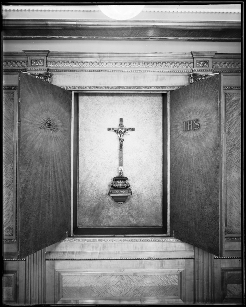 Altartavlan i det kyrkorum som användes vid kyrkoritualerna ombord