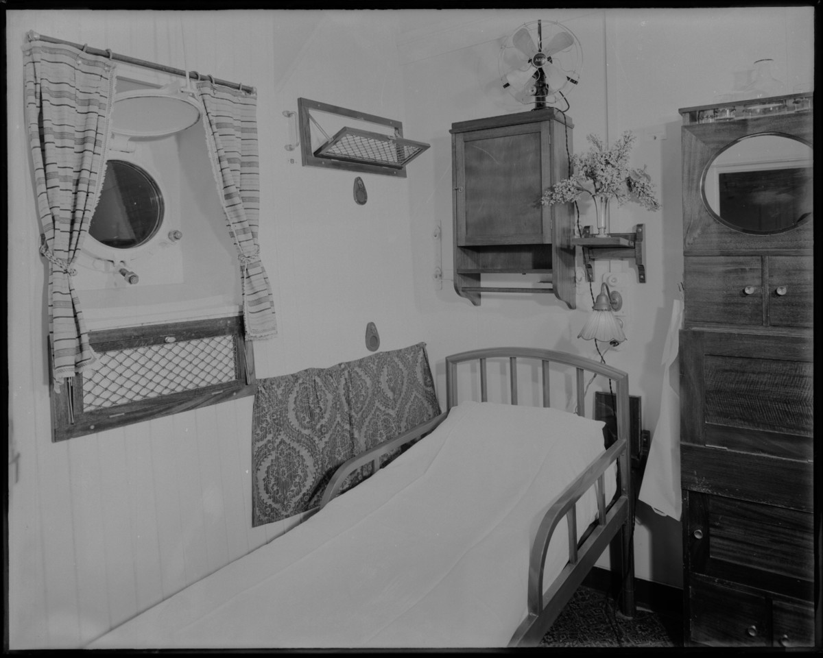 Interiör från passagerarhytt för två personer. "Västindienhytt" enligt anteckning.