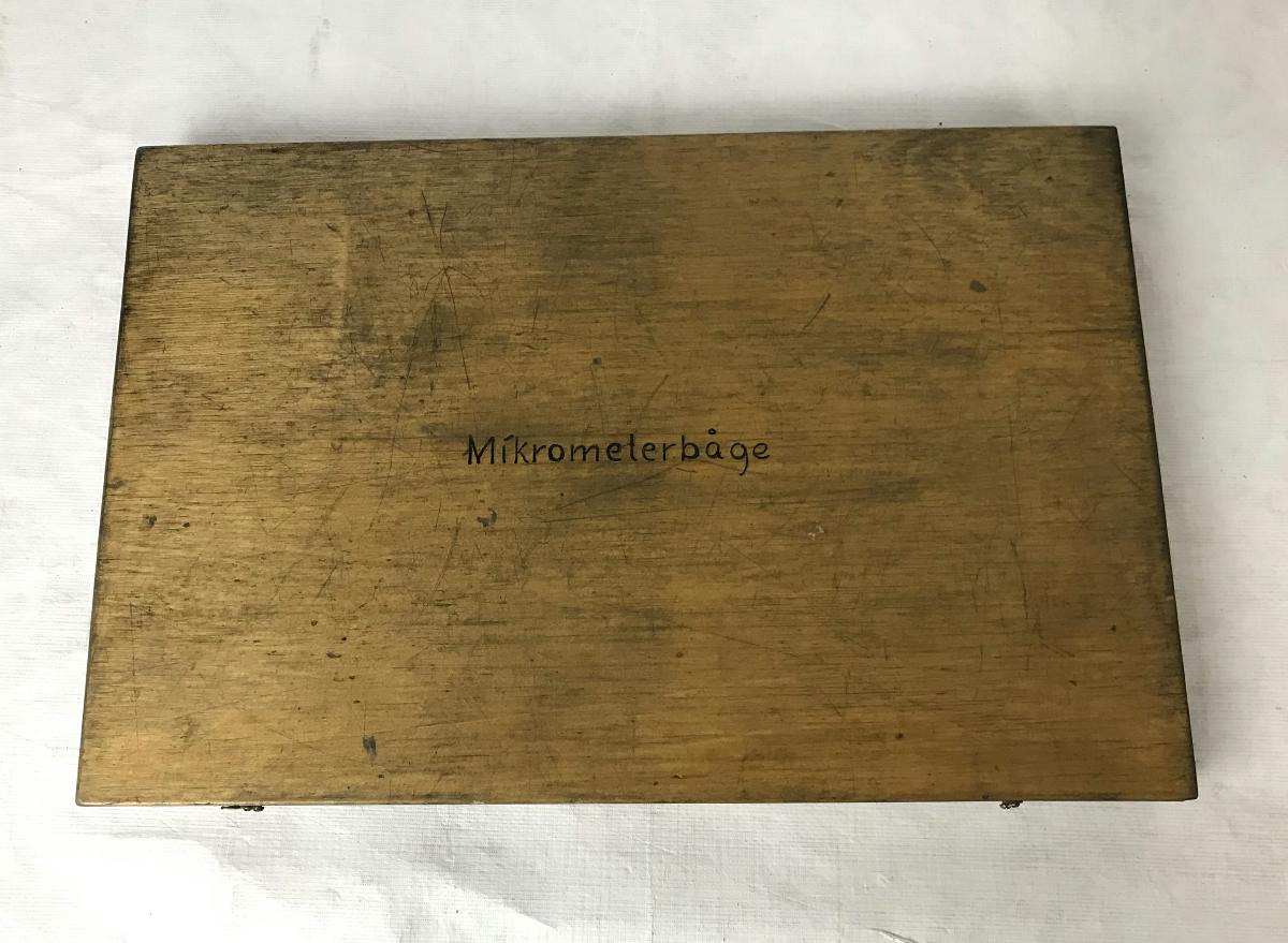 Specialbyggd låda för OBS Special Mikrometerbåge 400. Handskrivet i lådan "Till Hydraul Ritn. 558543 Hus 2000KPM. Mått Ø 372 HG vid 50 m/m"
