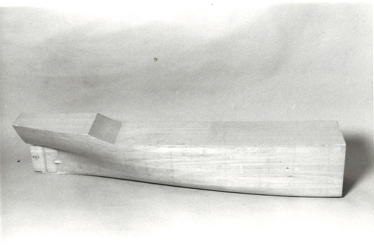 Inplanering & storleksbestämning av bordläggningsplåt samt utslag för olikformade bordläggningsplåtar. Akterskepp: Med plåt- och spantmarkeringar i blyerts. Uppbyggt akterparti.