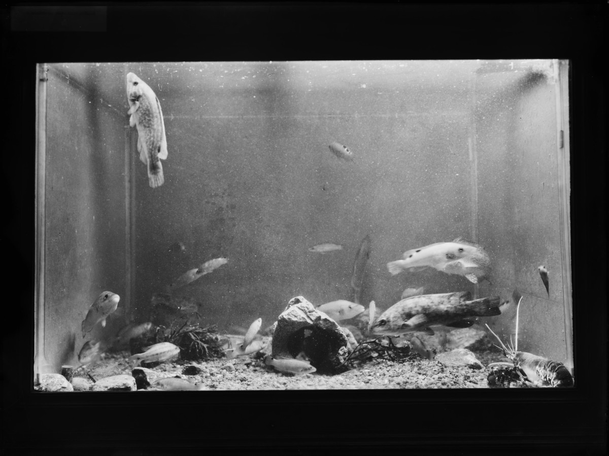 Akvariummed fiskar, gyltor, hummrar. Ev på Sjöfartsmuseets akvarium på Norra Hamngatan