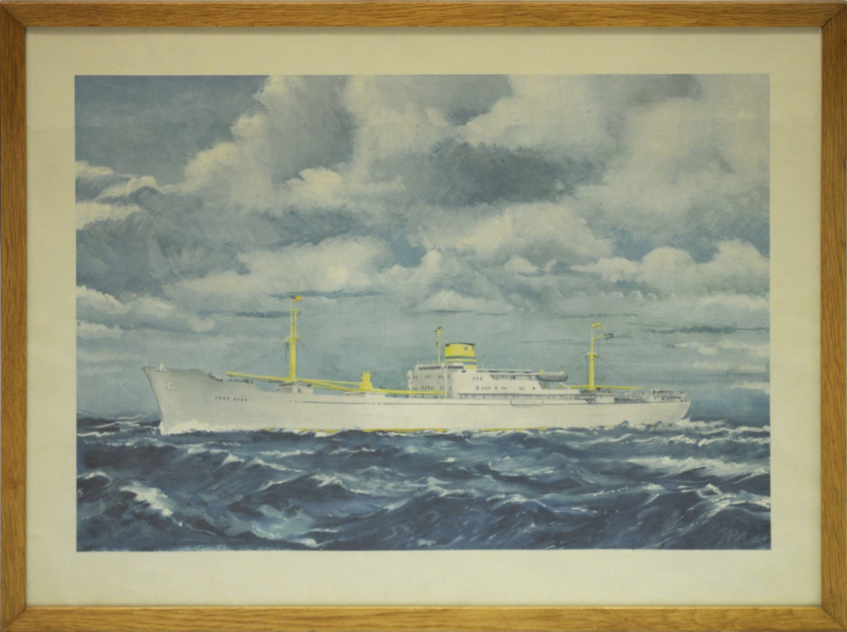 Etikett: Lake Eyre. Fruktbåt i Broströms Atlanttrafik. 8300 brutto ton, 8250 tondödvikt. Byggd 1961 vid Eriksbergs Mek. Verkstad