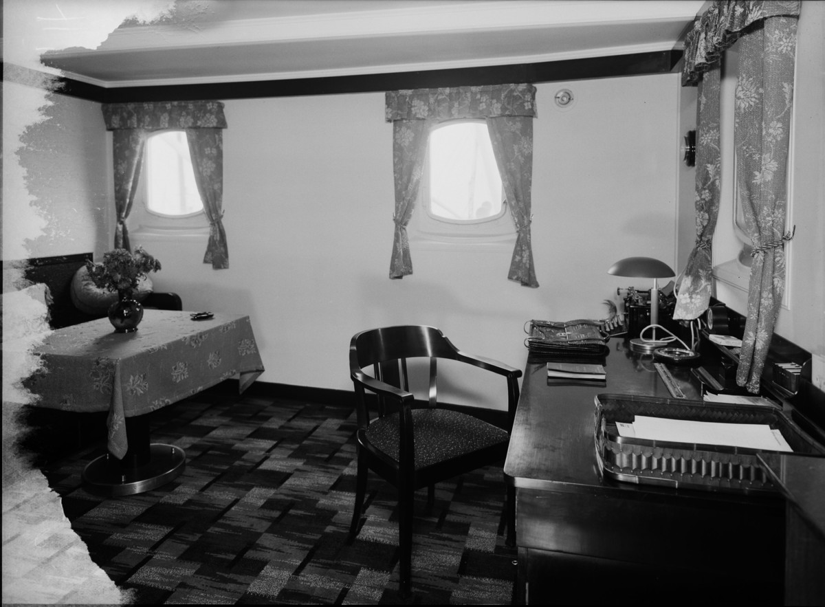 Gå tillbaka till sökPublic Domain, Sjöfartsmuseet GöteborgLägg till i Min samlingKopiera länkSkriv utHytt, kaptenens dagrumKEXHOLM, 1937, lastfartygAktörerSvenska Amerika Mexiko Linien (SAML) (1911 - 1946), RederiKategorifartygsinteriör (fartyg)FartygKEXHOLM, 1937, lastfartygFartygstyplastfartygDatering1937InventarienummerSMGF7315UtställdInte utställd på museetBeskrivningFotograferad 4/11 1937.