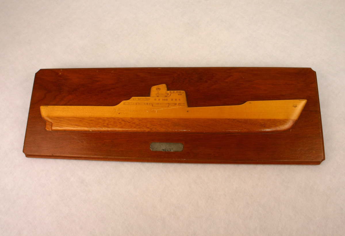 Halvmodell på plakett av okänt fartyg