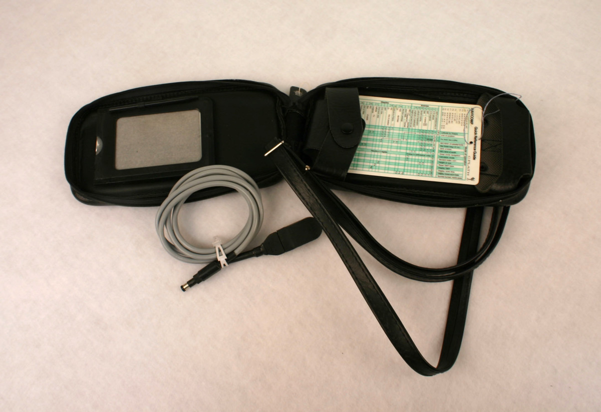 Med avtagbar axelremm. Innehåller radioantenn och kortkomandomanual till dator för astronomisk navigation.