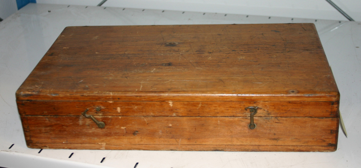 Arwidssons strömmätare ca 1879. Den till instruktionens fig 9 hörande texten lyder: "Strömmätaren består af ett vattenhjul (a) med fyra halfsferiska skålar på en vertikal axel, hvilken med en skruf utan ända ingriper i ett räkneverk, fästadt uti en aflång träskifva (b), som med lätthet kan röra sig omkring en annan vertikal axel (c), i hvars öfre ända (d) sänklinan (e) fästes och i den undre (f) en blykula. En spiralfjeder (g) håller nedtryckt en krökt arreterinsstång (h), hvilken hindrar vattenhjulet att gå rund; denna fjeder kan genom dragning i en särskild lina, arreteringslinan (i), sammantryckas, hvarvid arreteringsstången upplyftes af en bladfjeder (k) och vattenhjulet blir fritt. Instrumentets metalliska delar äro af messing, med undantag af hjulaxelns tappändar, som äro af hårdt hamradt guld och röra sig i agatpannor."