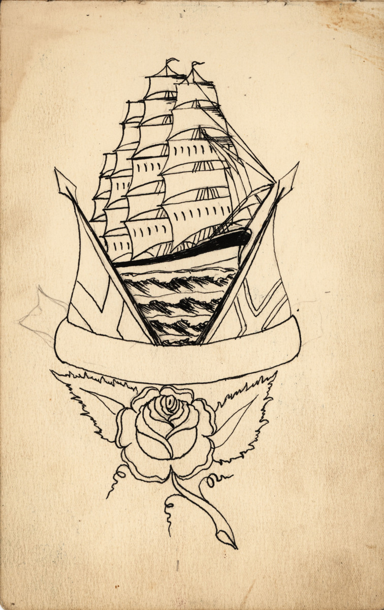 En tatueringsförlaga i färg från skissblock.