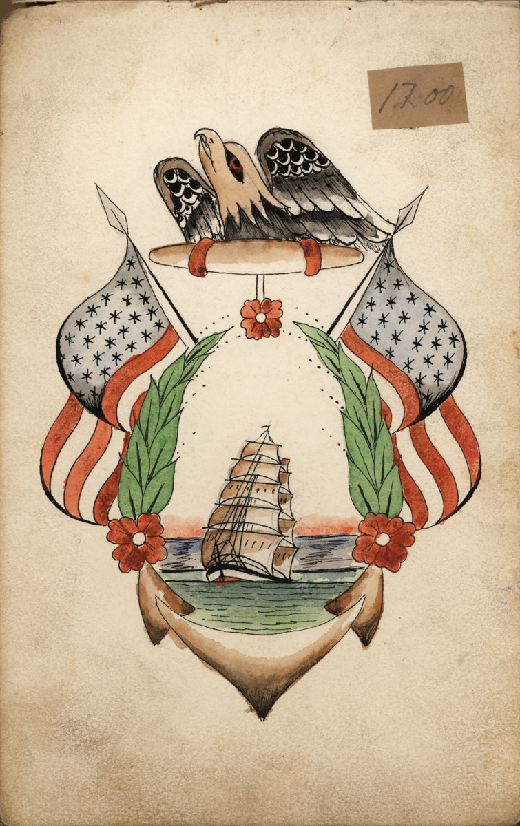 En tatueringsförlaga i färg från skissblock.