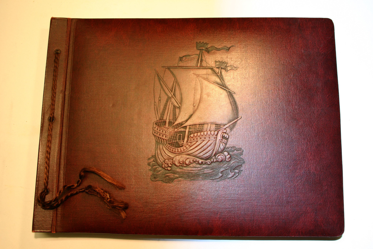 Album i vinrött konstläder. På framsidan finns ett segelfartyg i relieftryck. Innehåller svartvita fotografier, tryckta menyer och utflyktsbeskrivningar samt vykort från västindienkryssningen den 6 februari till den 24 mars 1932 med m/s GRIPSHOLM. Har tillhört givarens farbror.