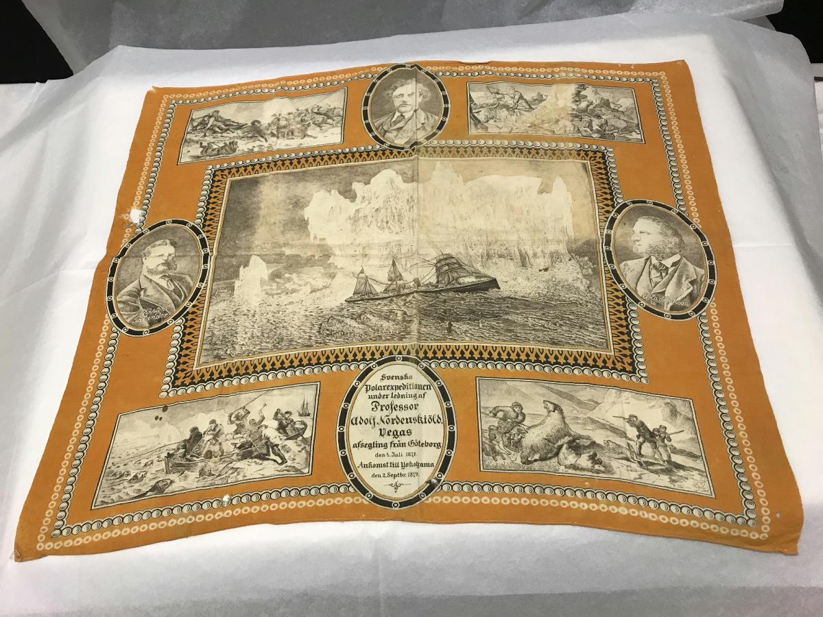 Minnesscarf över svenska polarexpeditionen ombord Vega under ledning av Adolf Nordenskiöld.