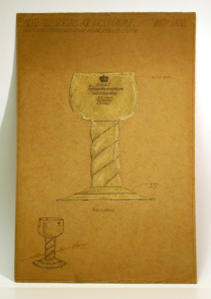 Påskrift: Skiss till seglingspris GKSS material förgyllt silver eller enbart silver grupp II motto "SPIRAL"