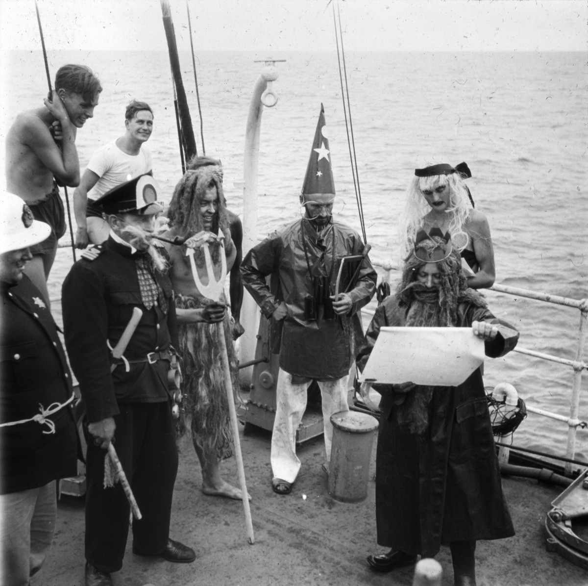 "H.M:t Neptun gör visit ombord." Bildtext ur H. Petterssons bok Med Albatross över djuphaven.