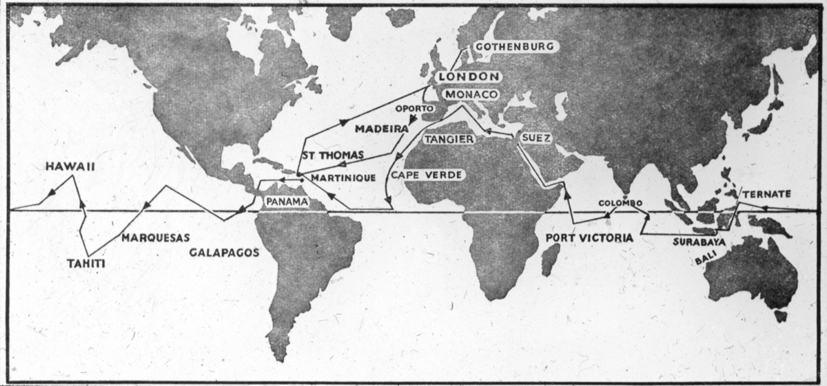 Albatrossexpeditionen, karta över resvägen
