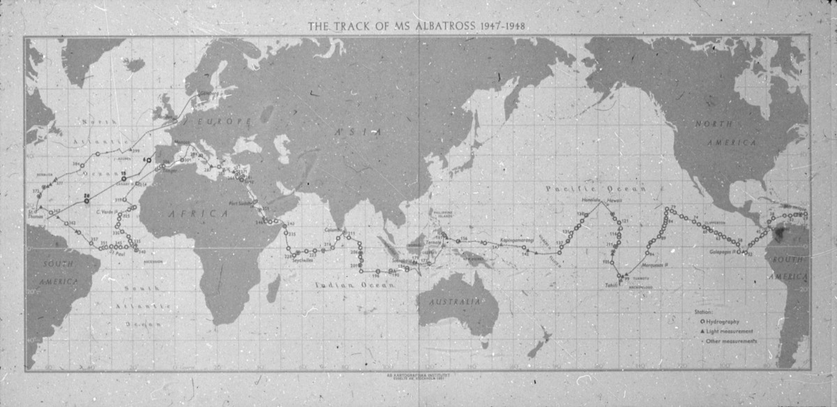 Albatrossexpeditionen, karta över resvägen juni-oktober 1948