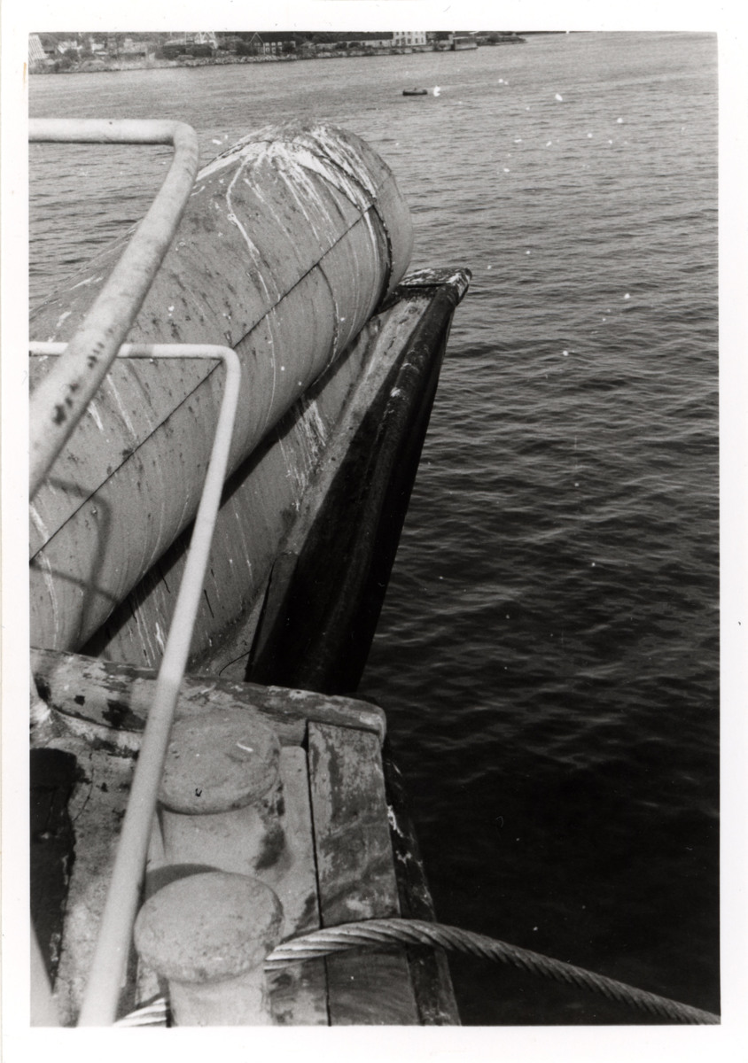 Svartvitt fotografi som föreställer en del av den fyrmastade barken MOSHULU.