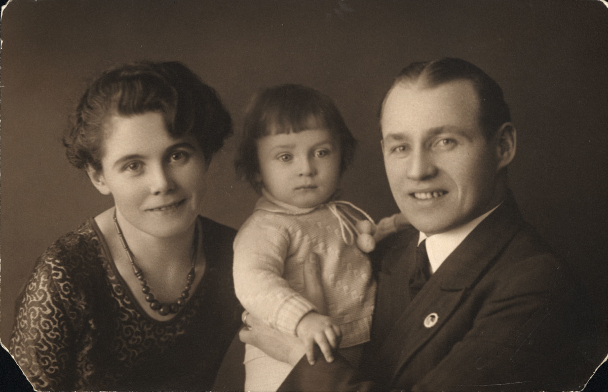 Fotografi föreställande Sten Lundgren (i mitten) tillsammans med sina föräldrar.