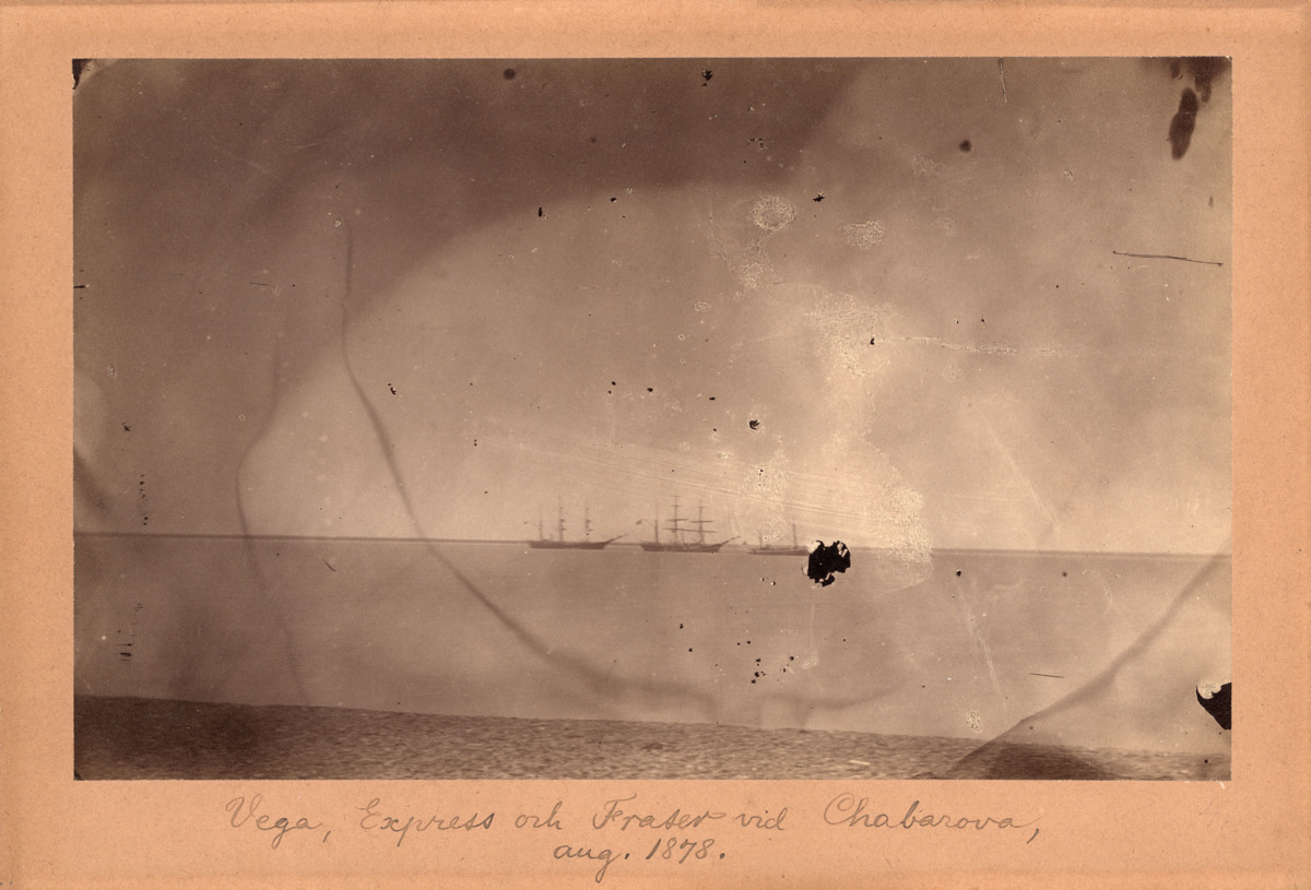Fotografi från VEGAs resa genom Nordostpassagen 1878-1880. Föreställer ett uppskruvat isberg på väg att smälta i närheten av VEGAs vinterkvarter. Tagen i juni 1879.