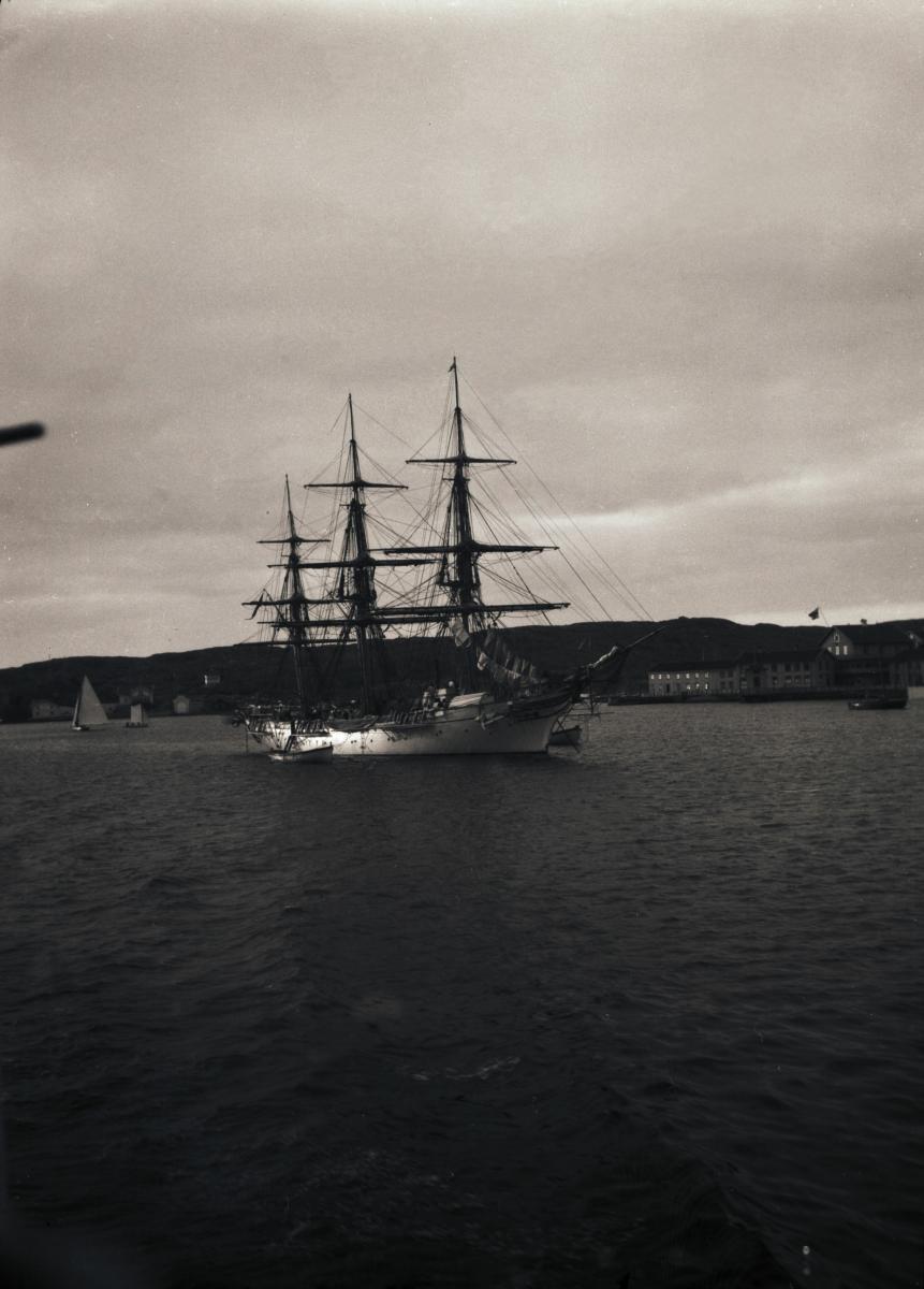 Sett snett från sidan, ankrad, inga segel satta, utanför Marstrand, ca 1930.